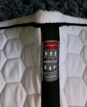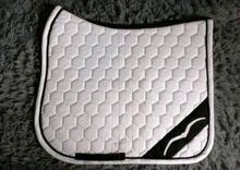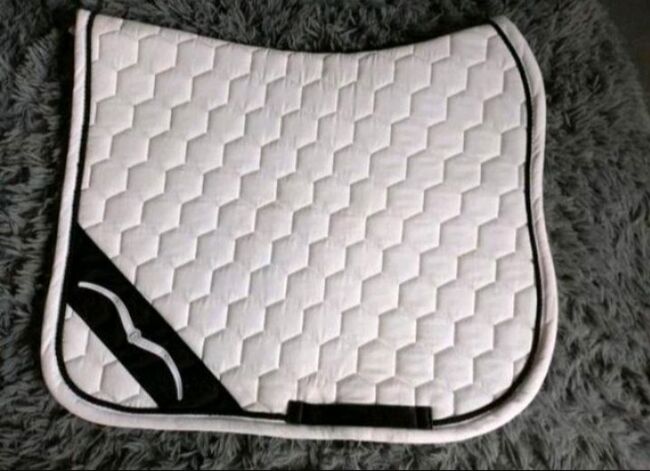 ⭐️Animo⭐️Dressurschabracke in grootte WB - Dressuurzadeldek WB van Animo in wit met zwart koord. Logo geborduurd aan beide zijden in wit op zwart.