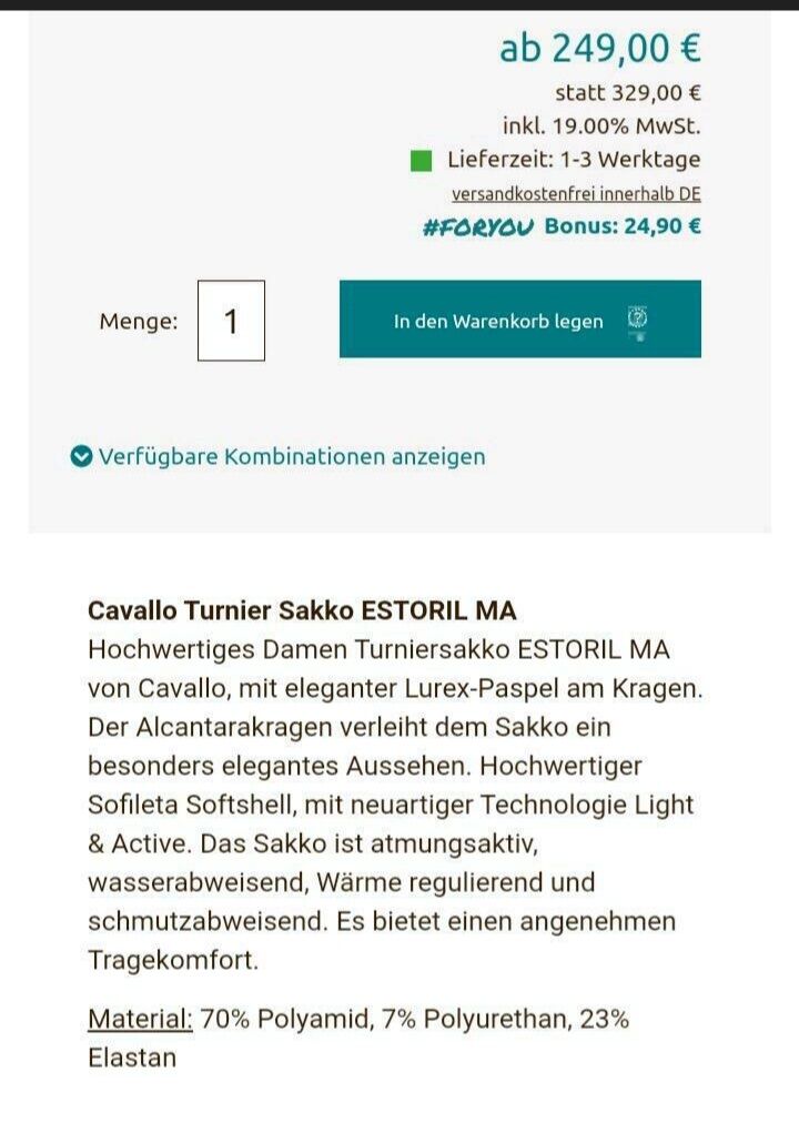 ⭐Cavallo/New Tournament Jacket in D 36⭐ - Nieuw showjack (één keer gedragen) van Cavallo, model Estoril Ma, in kleur choco/wit, maat D 36. Zeer hoogwaardige afwerking. Tip top conditie! Voor verdere details en meer gedetailleerde beschrijving van de fabrikant zie foto. NP was 330 €.