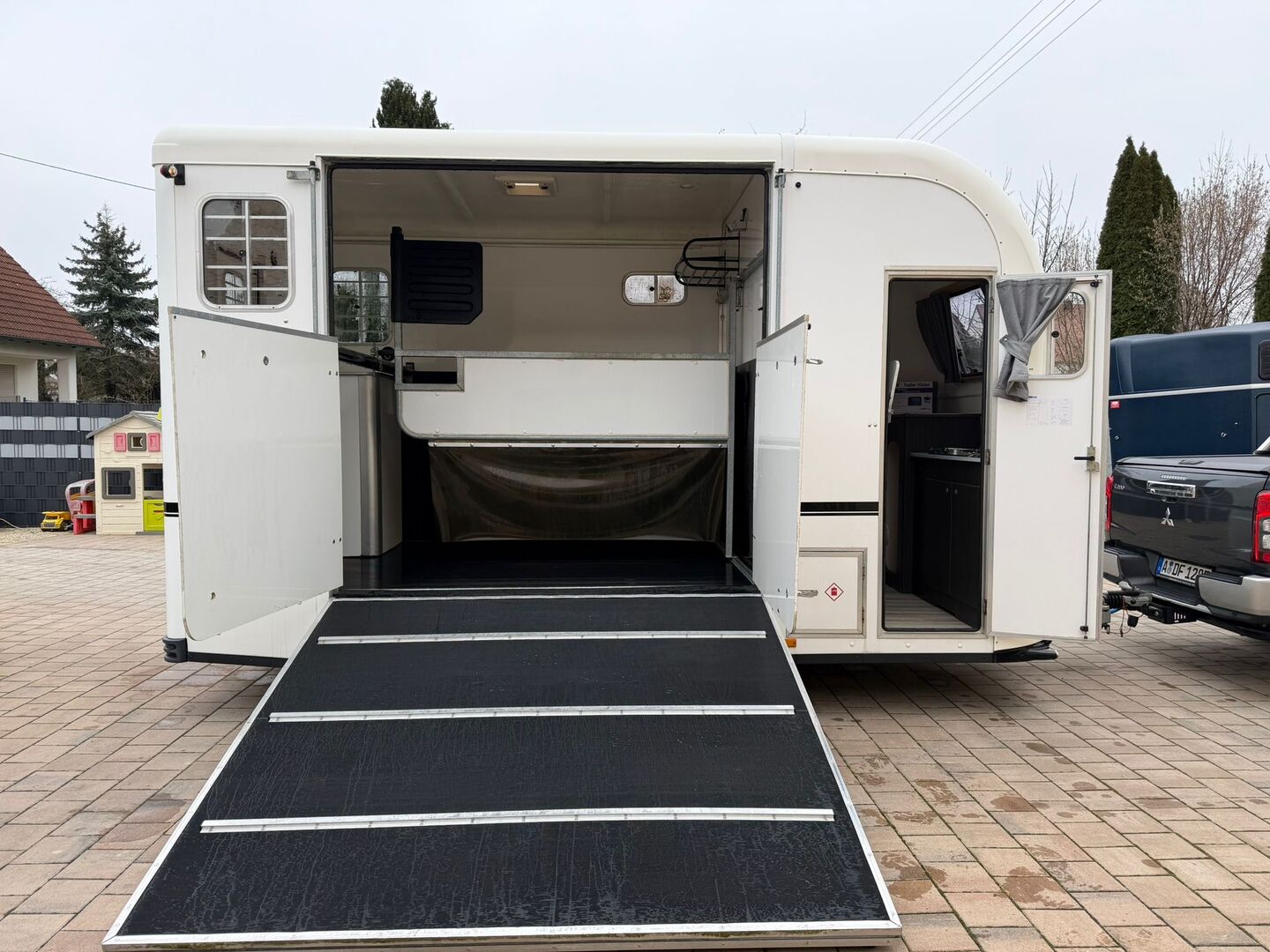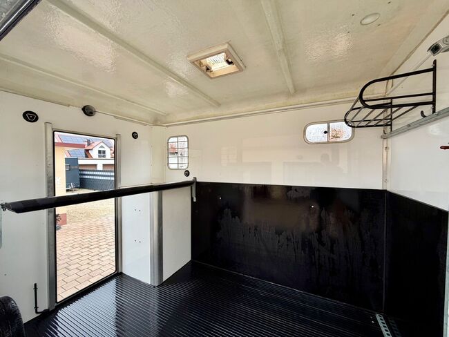 - Eerste registratie 06/2018 - Leeggewicht 1380 kg - Toegestaan totaalgewicht 3000 kg - Max. disselbelasting 150 kg - HU tot december 2027 - Automatisch jockeywiel - Afsluitbare aparte zadelkamer met zadelhouder en hoofdstelhouder - Verschillende schuiframen - Dakluik - Raam bij de ingangsdeur - Zeer licht - Toegangsdeur achter kan op slot - Zijlaadklep met treden - Multi-instelbare, draaibare scheidingswand in het midden - ALUMINIUM VLOER - Rubberen vloer - binnenverlichting - Treeplank bescherming - Reservewiel - Interieurcamera met monitor - Banden vanaf 2024 - Chassis met schokdemper voor 100 km/u goedkeuring