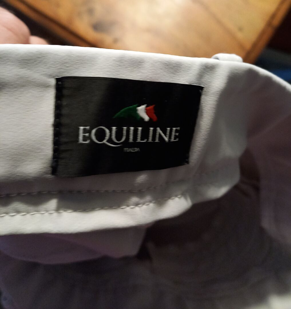 ⭐️Equiline⭐️Neuwertige Rijbroek Fullgrip in D38 - Zeer verzorgde (wedstrijd)rijbroek van Equiline, model Adellek, in de fabrieksmaat I42, wat overeenkomt met een D38. Kleur wit. Slechts 2 keer gedragen op concoursen, tiptop conditie! Nieuwprijs was 225 €.