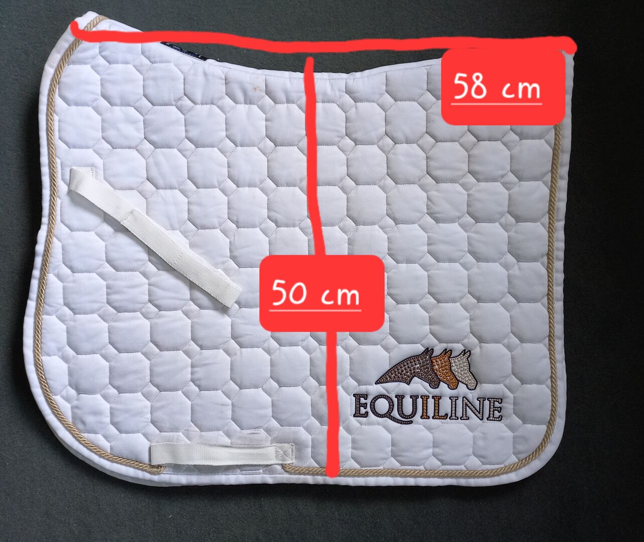 ⭐️Equiline/saddlepad Sprinter DR/WB⭐️ - Zeer goed bewaard wit zadeldek van Equiline, model Sprinter. Vers gewassen natuurlijk, heeft alleen een paar gebruikssporen op het gebied van de zadelvlekken, die niet te vermijden zijn. Zie foto voor afmetingen. NP is 90 €.