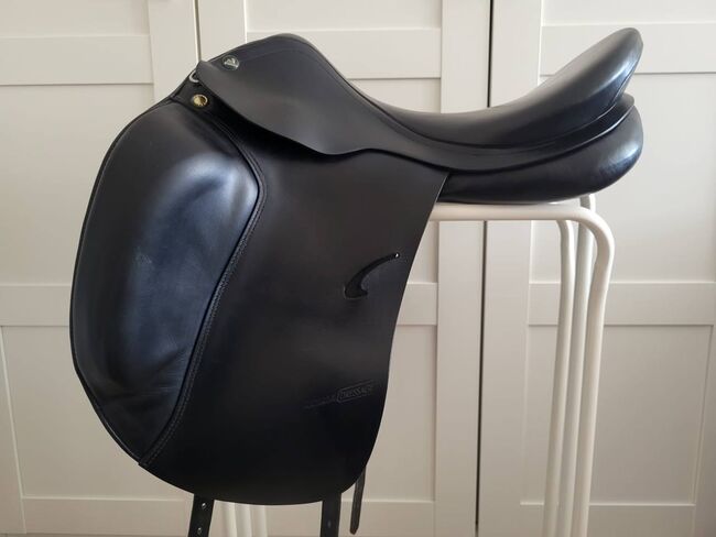 Dieser stilvolle 18-Zoll Dressursattel bietet höchsten Komfort und optimale Unterstützung für anspruchsvolle Dressurreiter.