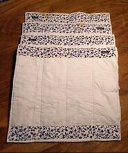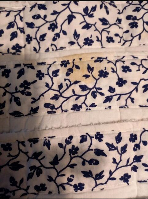 ⭐️Lacrox⭐️4er Set pleisteronderleggers - Zeer nette set van 4 verbanden van het merk Lacrox in wit met een bloemenpatroon in blauw/navy. Ze zijn alle 4 even groot: 38 cm hoog, 43 cm breed. De binnenkant is gemaakt van absorberende badstof.
