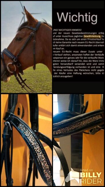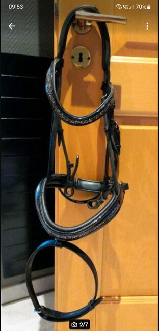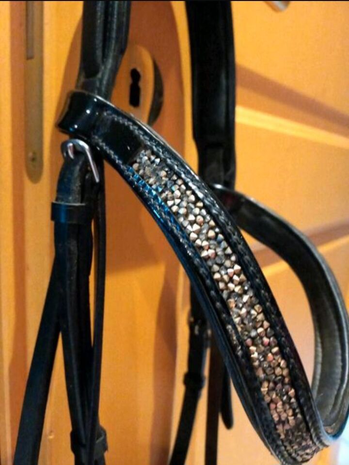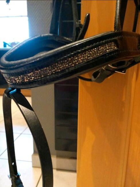 ⭐️My Filou⭐️Schwarze Snaffle in maat WB - Geweldige, goed verzorgde snaffel van het merk My Filou met glinsterende wenkbrauwband en neusriem. Kleur: zwart. Het kopstuk en de neusriem zijn zacht gevoerd. Beslag in zilver. Zonder teugels en bit! NP was 180 €.