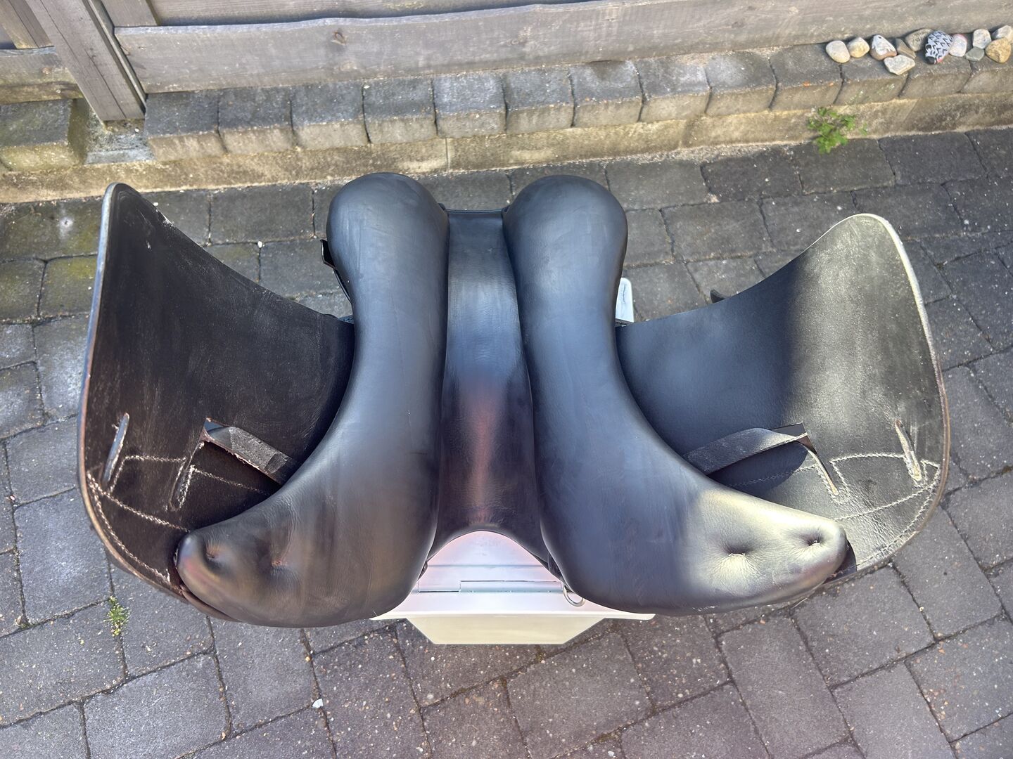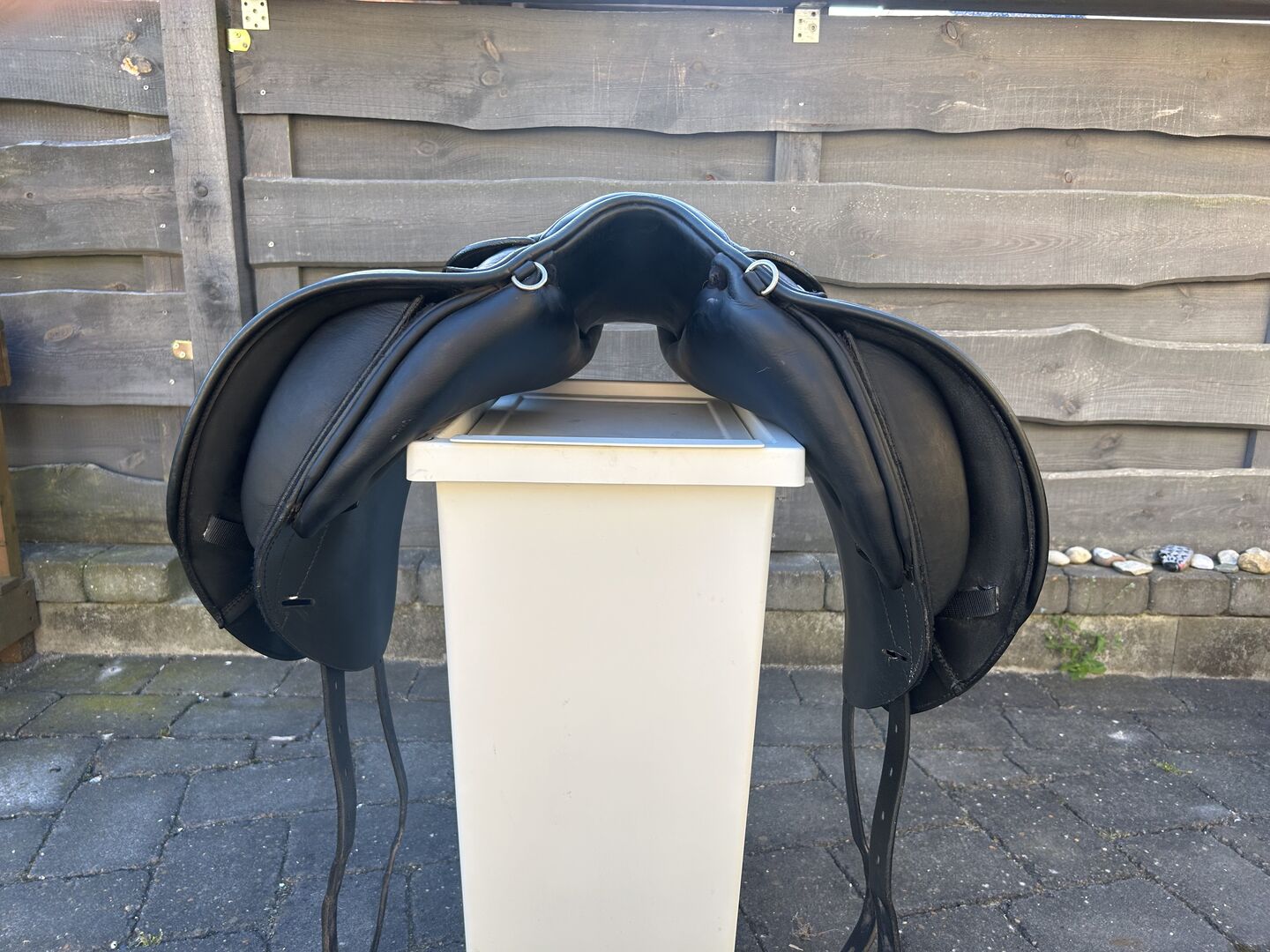 Het zadel heeft een 16 inch zit, een 34 mm kamer en grote klittenbandblokken die zorgen voor optimale ondersteuning. Het zadel is ideaal voor korte pony's/kleine paarden door het korte contactoppervlak. Het zadel is voorzien van een V-bar en is nog niet opgevuld.
