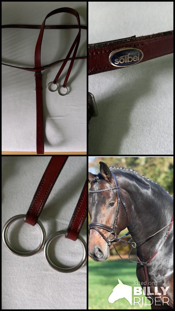 ⭐Solid/NEW lederen martingaal WB⭐ - Nieuwe (slechts 1 x aangepast) martingaal van het merk Solibel in hoogwaardig leer. Kleur: roodbruin. Nooit mee gereden, topconditie, geen roest of iets dergelijks. Halsriem verstelbaar in omtrek, met doorgangsringen. Lengte verstelbaar onderaan.