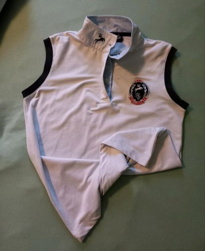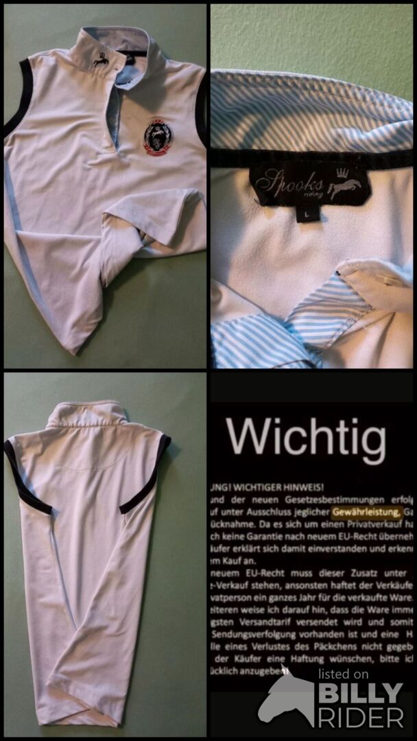 ⭐️Spooks⭐️Ärmelloses Showshirt in maat L - Zeer goede staat, mouwloos wedstrijdshirt van Spooks in wit, maat L. Rekbaar materiaal. Met bedekte knoopsluiting. Verstevigde, rekbare manchetten aan de mouwuiteinden. Klaar voor een nieuwe ronde!