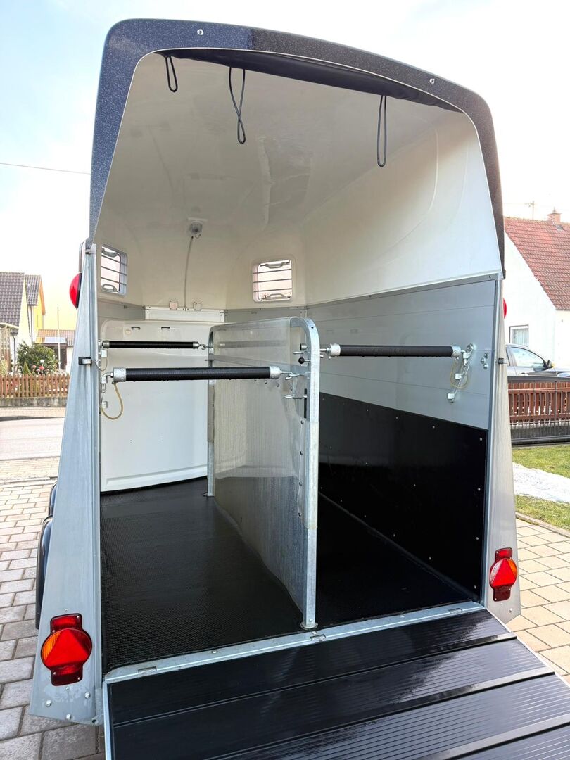 - Eerste registratie 07/2023 - Leeggewicht ca. 887 kg - Toegestaan totaalgewicht 2000 kg - Max. disselbelasting 100 kg - HU tot augustus 2027 - EquiDrive chassis met schokdemper voor 100 km/u goedkeuring - Automatisch jockeywiel - Getinte ramen die kunnen worden geopend - Panieksysteem - Laadhulp - Gaasrolgordijn - Afsluitbare zadelkamer - AluBiComp vloer - Rubberen vloer gelijmd en afgedicht - Hooi net houder - Binnenverlichting - Houders voor voer- en wateremmers - Tredebescherming - PVC scheidingswand volledig uitneembaar en verstelbaar met draaistang - Nivellering voor en achter pony
