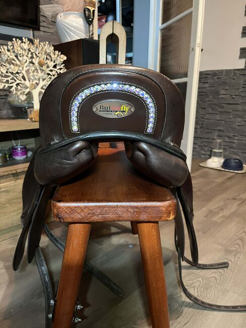 "Vlinder" Uta Gräf zadel bergkristal 18 T - Ik verkoop mijn Butterfly zadel in goede staat. Het is in de staat zoals op de foto's, met kleine krasjes en gebruikssporen. Op verzoek maak ik graag meer foto's.