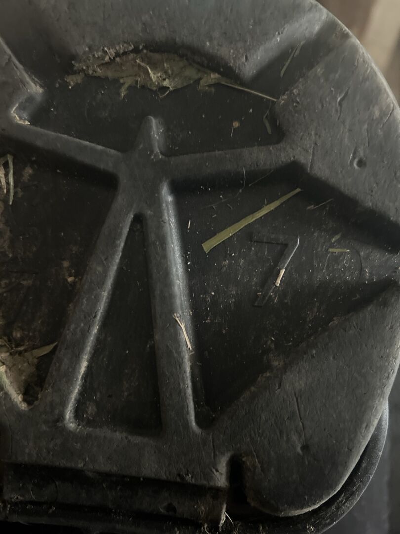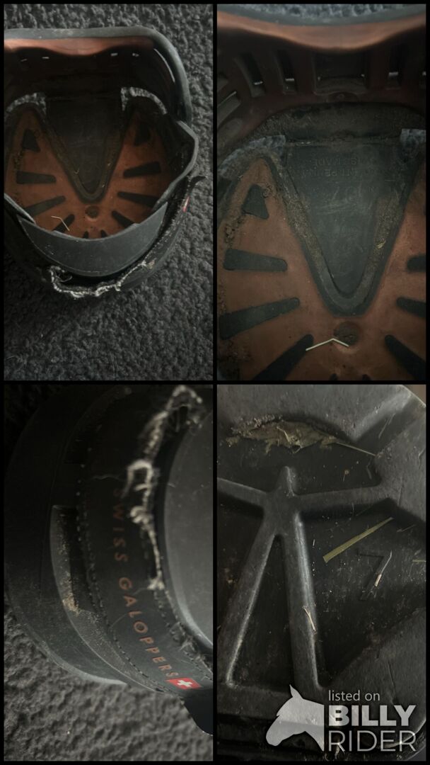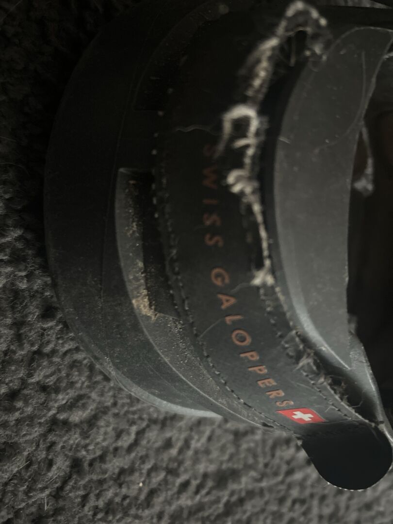 De schoen is in principe in goede staat en functioneel: - Robuuste constructie van Swiss Galoppers - Maat 7 voor middelgrote paarden - Veilige sluitingen aanwezig