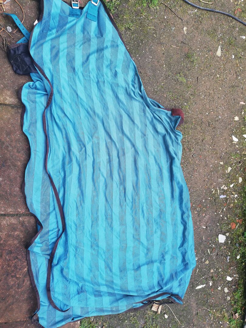 125 Vliegendeken - Te koop is een 125e vliegdeken blauw met bruine rand.