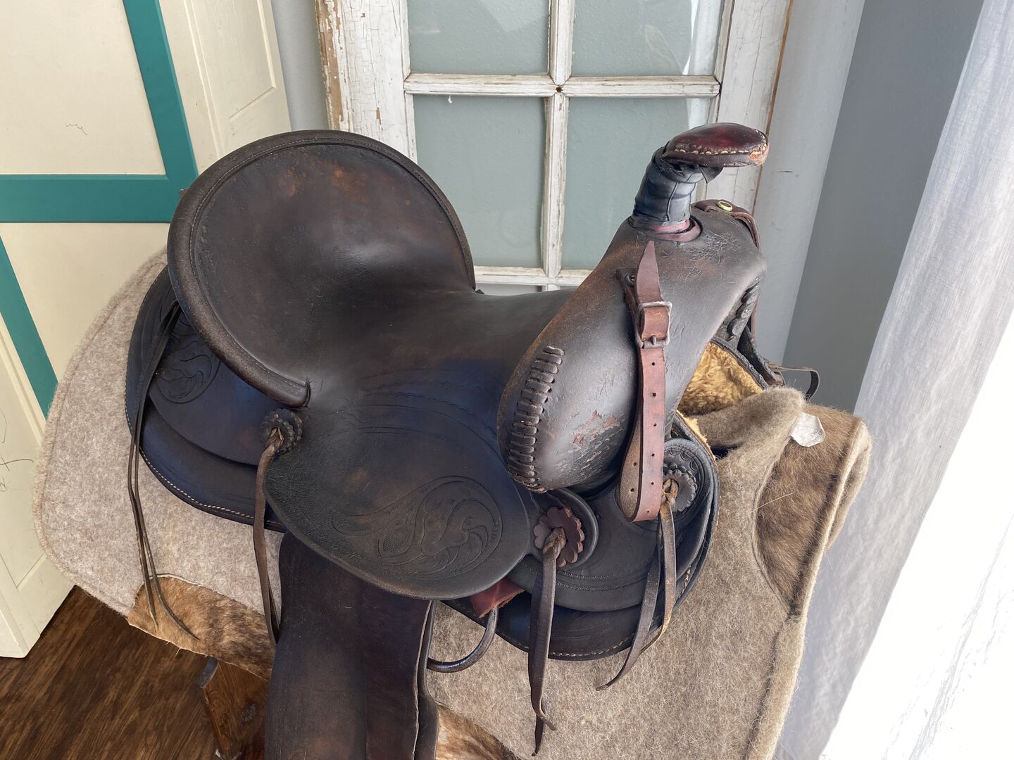 western saddle is in good, pre-owned condition. This saddle has scuffs, scratches, and some regular wear from many years of use; please review photos.