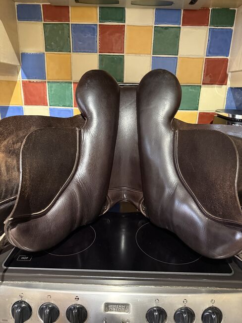 16.5” Kent & Masters Original Cob GP Saddle in brown Used but in immaculate condition, only for sale due to my mare retiring Always been kept and used with a cover on, no marks or imperfections, checked 6 monthly by a saddle fitter Currently has a wide/extra wide gullet in but I have the extra wide and extra wide/extra extra wide s-gullets that I could sent at additional cost