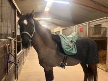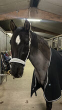 Hij is heerlijk in de omgang, makkelijk te smeden en te laden. Hij leeft momenteel in een grote kudde, is gewend om in boxen te staan en ook in een open stal. We hebben hem niet echt kunnen rijden. Hij voelde zich niet op zijn gemak onder mij als ruiter. Bij de vorige eigenaar deed hij het ook goed in de wei.