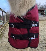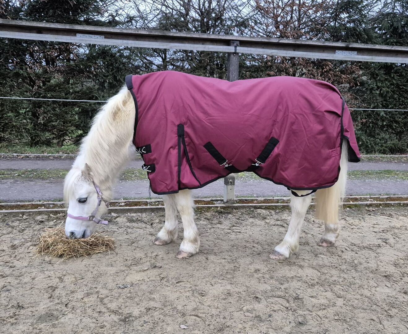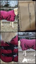 1680D highneck regendeken pony 115 125 winterdeken 50g wijnrood 5000mm - Onze best verkochte all-season regendeken met 50g, vaak gekocht in de winter, maar ook bij hevige regen of tochtige stallen, door de diepe zweet slab is hij ca. 10cm langer, nauwsluitende hoge hals, past ook bij paarden met een brede hengstenhals, prijs 159,90€, beursartikelen met korting voor 76,00€ voor ponydeken 105, 115, 125cm.