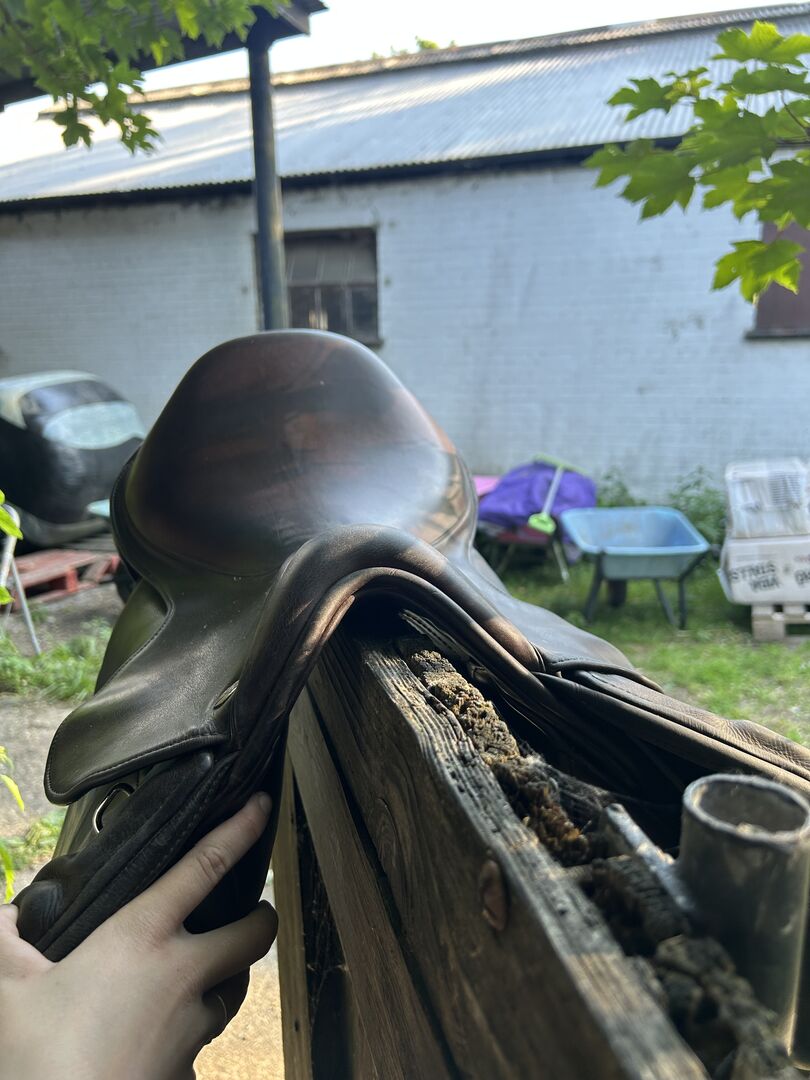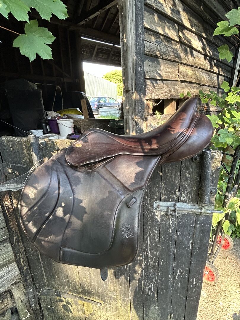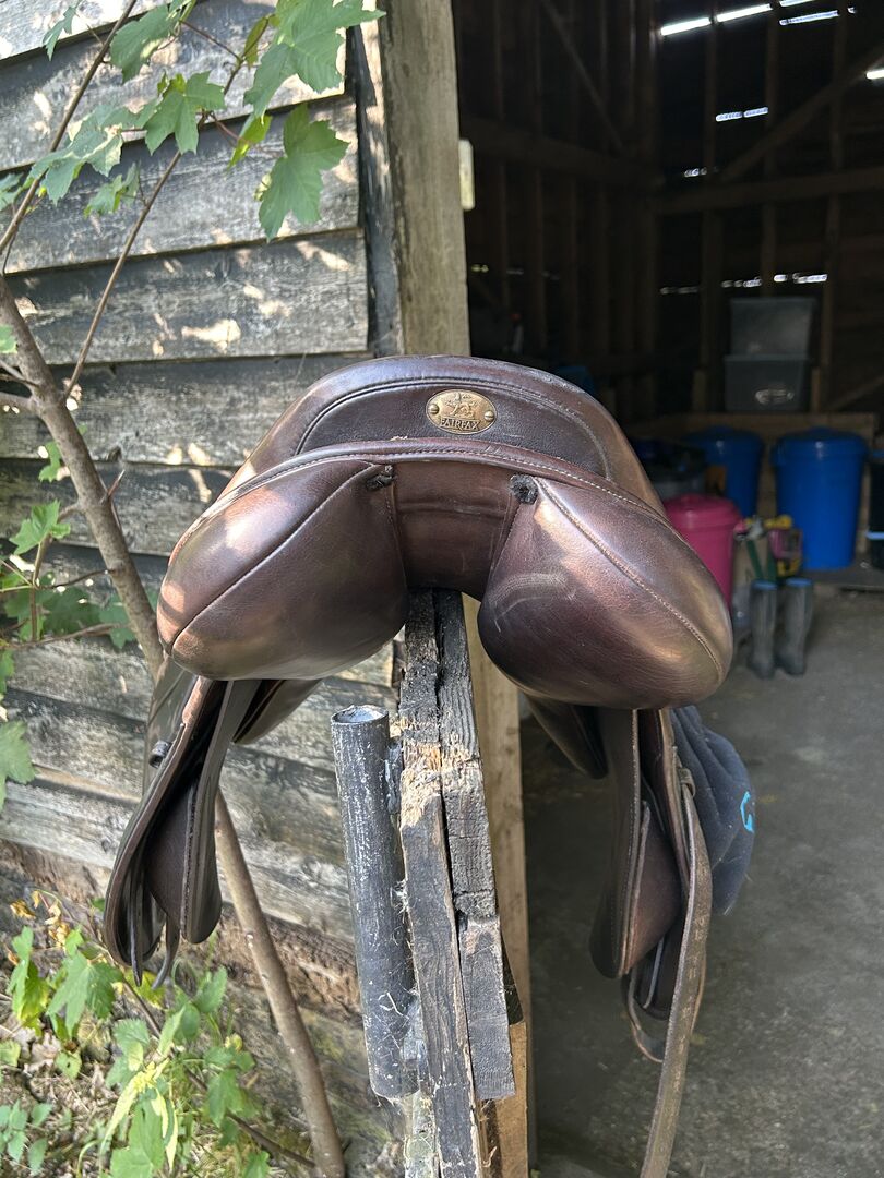 17.5” brown fairfax original dual flap jump saddle Such a comfy saddle. Adjustable. Has a MW bar in it. Recently flocked Some age wear marks but no real damage. Selling as much as I love this saddle I would like to get something in black. Collection or local delivery. - Hertford. £1200