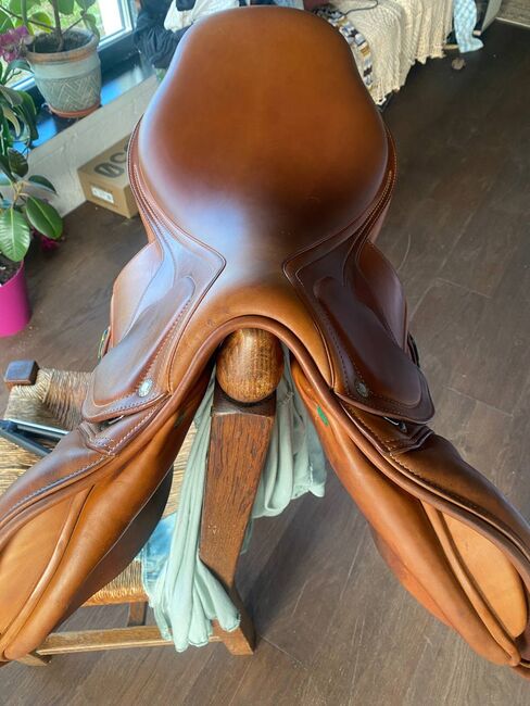 Beautiful 17.5” saddle crafted from high-quality, supple leather with a rich, warm finish. This saddle offers both comfort and performance, making it an excellent choice for riders seeking a secure and balanced seat.