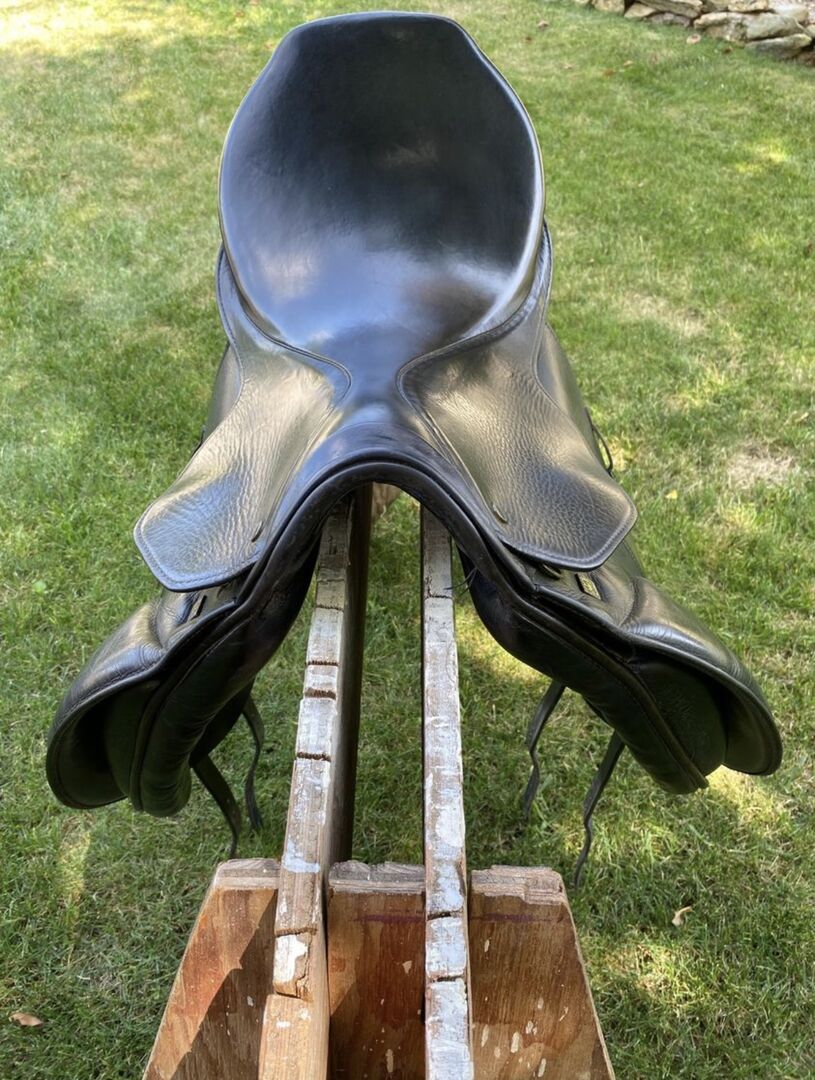 Beautiful used saddle in excellent condition. Grippy leather. Wool flocked. Selling with leathers, Flexi stirrups and dust cover