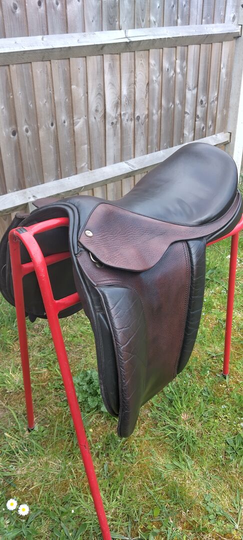 17" Black Country Saddle in havanh brown. A straight cut show saddle, on a Euro tree. No longer fits my boy, hence for sale. Very good used condition. Stirrup leathers & irons always taken off, when it's not being used & kept in a smoke free home. Regularly cleaned. Can post, via a courier at the buyers expense. Prefer cash on collection