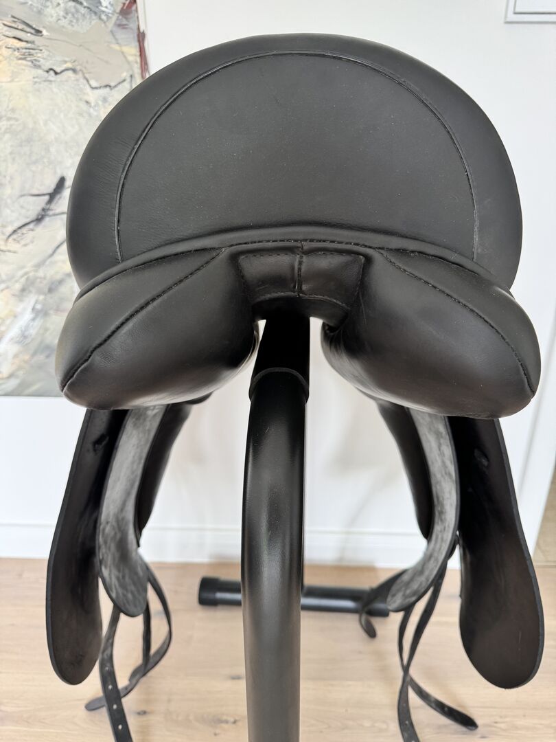 17 inch Jaguar/ Harry Dabbs AJ Gold Sport WB zadel - Harry Dabbs 17 inch zadel van zadelmakerij Anke Just, klittenband, comfort zitting, paardenhoofd logo in leer, patent details, Harvard paste op een full size pony en het meisje was 165 cm 48 kg. Vorig jaar maart gekocht, verkocht omdat de pony verkocht werd. Absolute topconditie. Nieuwprijs 4250 Euro