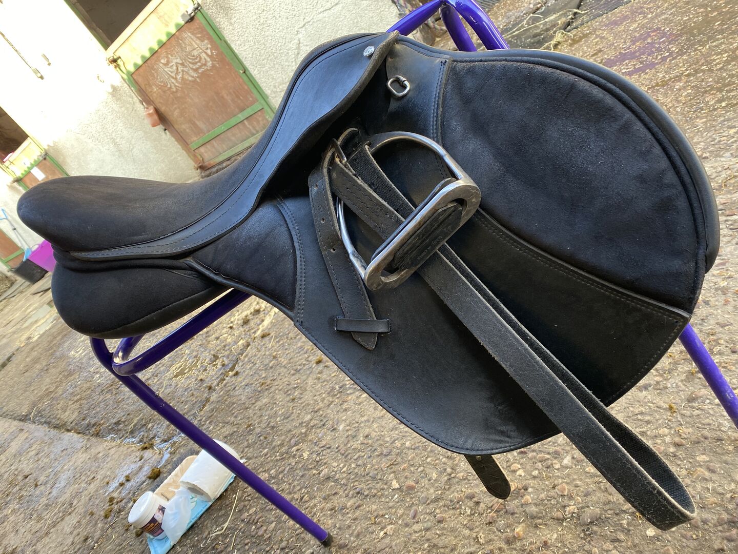 17” thorowgood saddle including girth and stirrups unsure of girth size