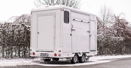 gegalvaniseerd chassis toelaatbaar totaalgewicht 2700 kg; leeggewicht (1215 kg) Vloerconstructie van aluminium Snaplock-profielen met speciale rubberen vloermat; 30 mm dikke volledig geïsoleerde zij- en dakpanelen, aerodynamisch frontontwerp Afsluitbare toegangsdeur rechts met opklapbaar opstapje Zijhelling met ventilatieklep erboven 2 valramen bij de paardenhoofden 1 schuifraam in de lengte tegenover; 1 groot dakluik Verstelbare scheidingswand met nekbevestiging plank bij de helling verwijderbare borstbeugel over de hele lengte Een grote buitendeur aan de achterzijde Zadelkamer vooraan met opklapbed, 2 dekenrekken, hoofdstel en draaibare zadelhouder COC papier Onmiddellijk beschikbaar Bezichtiging alleen op afspraak Prijs op aanvraag Vragen onder 01606106131--00491606106131