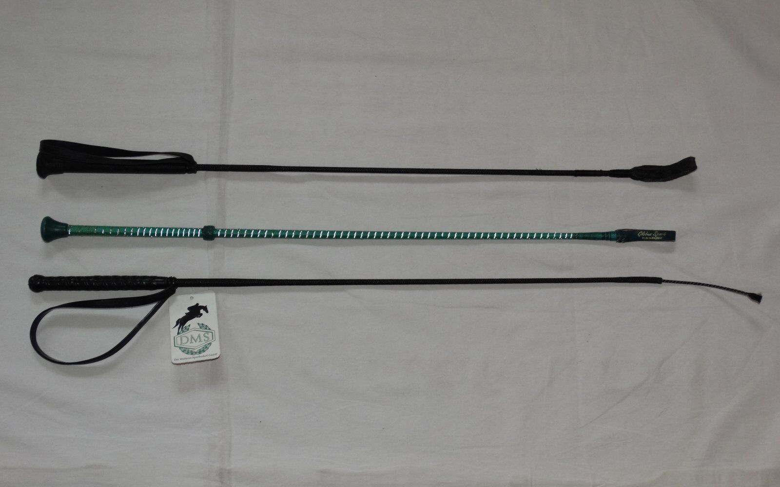Onder: nieuwe korte zweep van DMS met handriem, zwart, 67,5 cm, zonder schok = 10€