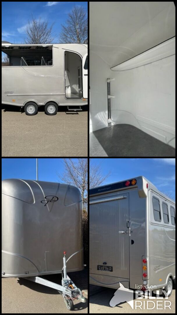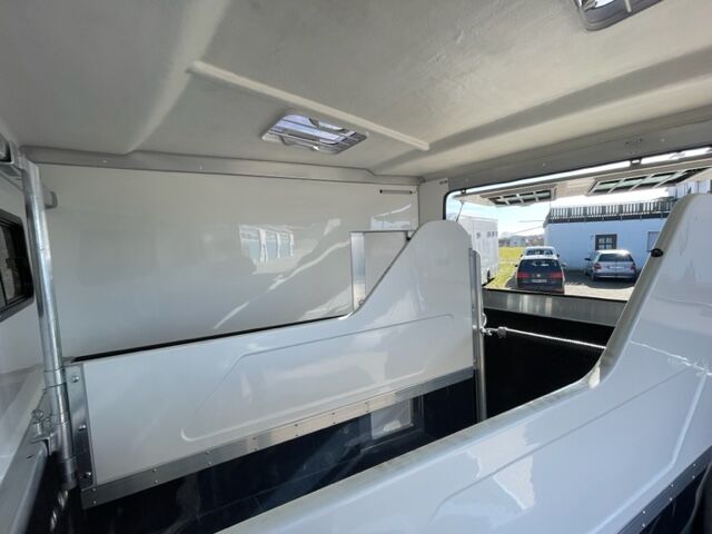 3,5 t bruto voertuiggewicht 3 parkeerplaatsen voor paarden oprijplaat achteraan volledig te openen zijraam bij de paardenhoofden. Zadelkamer met 3 zadelhouders, hoofdstelhouders, opklapbare bank Doorgangsdeur van zadelkamer naar paardenruimte Schilderij Mini smeltend zilver Prijs op aanvraag Douanepapieren voor export kunnen tegen meerprijs worden verstrekt. Inlichtingen onder 01606106131--00491606106131