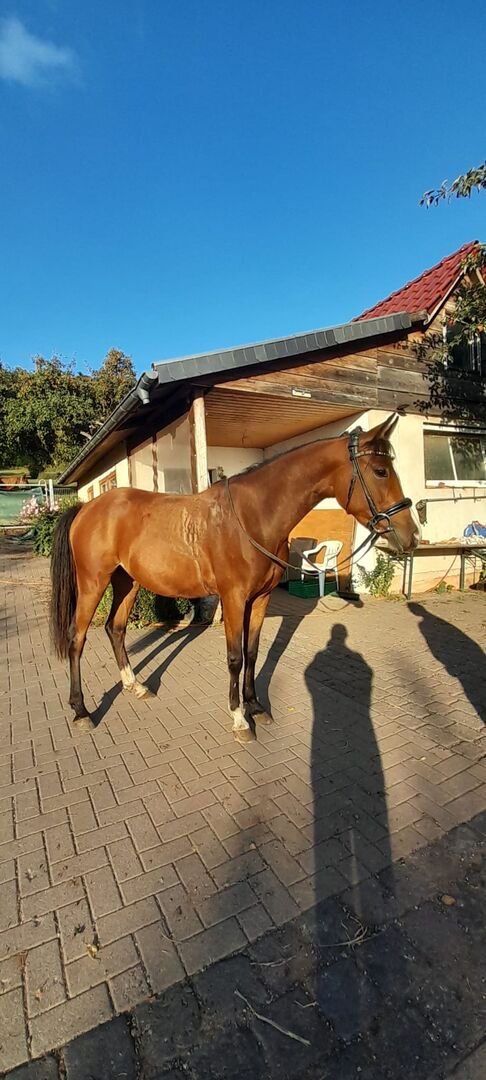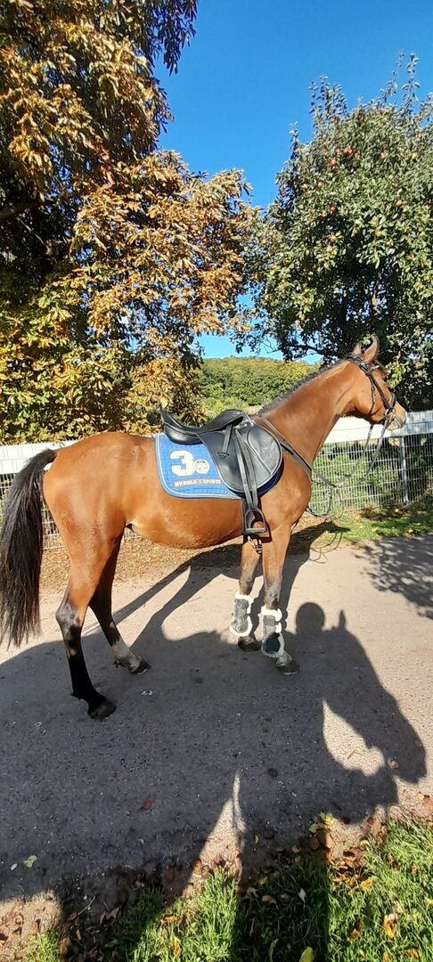 4 jaar oude rijpony merrie - Deze prachtige merrie is op zoek naar een nieuwe thuis. Ze is ingereden, d.w.z. stap, draf en galop. Ze is een mix van een Duitse rijponymerrie en een supermooie raszuivere Arabische hengst (ter plaatse te bezichtigen). Maat: ongeveer 1.45m Neem contact met ons op als je geïnteresseerd bent of vragen hebt