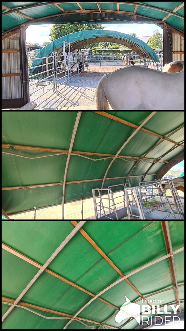 De bogen worden gedemonteerd en zijn onmiddellijk beschikbaar, passen in een paardentrailer.