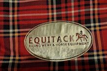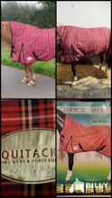 600D eQuiTack regendeken hoge hals 125 145 155 rood geruit met poolvlies 3000mm - Resterende voorraad regendekens van bedrijfssluiting van eQuitack GB, verkoop met korting, in plaats van 98,50€ per stuk 50,00€.