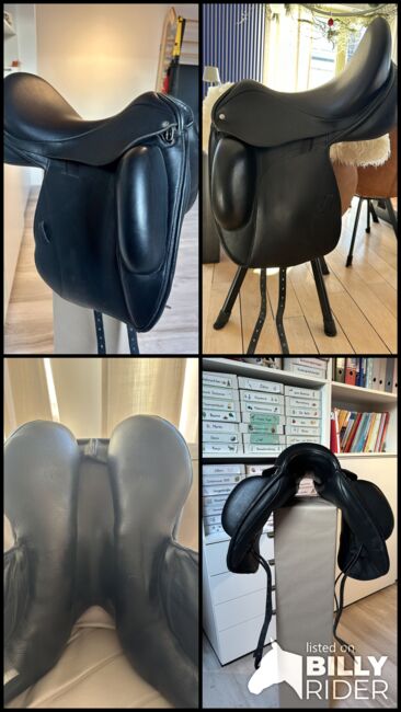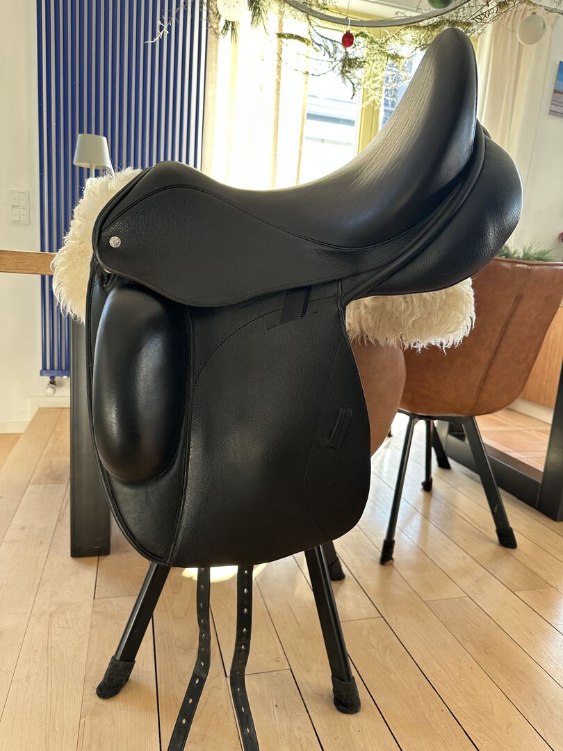 Aangepast Icon Flight dressuurzadel, 17,5 - Zeer comfortabel, rugvriendelijk (voor paard en ruiter!) zadel. Wegens stoppen met paardrijden. Het zadel is ongeveer 6 maanden gebruikt en is sindsdien droog en warm gehouden.