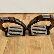 De conditie is zeer goed, maximaal 10 keer gebruikt. Er zitten krassen aan de onderkant van één stijgbeugel (zie foto's), die de werking op geen enkele manier beïnvloeden.