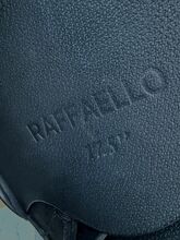 Het Raffaello mono flap dressuurzadel is gemaakt van dubbel kalfsleer. De diepe zit met extra steun aan de voor- en achterkant van het zadel ondersteunt de ruiter en helpt hem om zich "één te voelen met het paard". De lange knierollen zijn ontworpen om stabiliteit te geven aan het been van de ruiter, waardoor zijn balans en zit worden geoptimaliseerd.