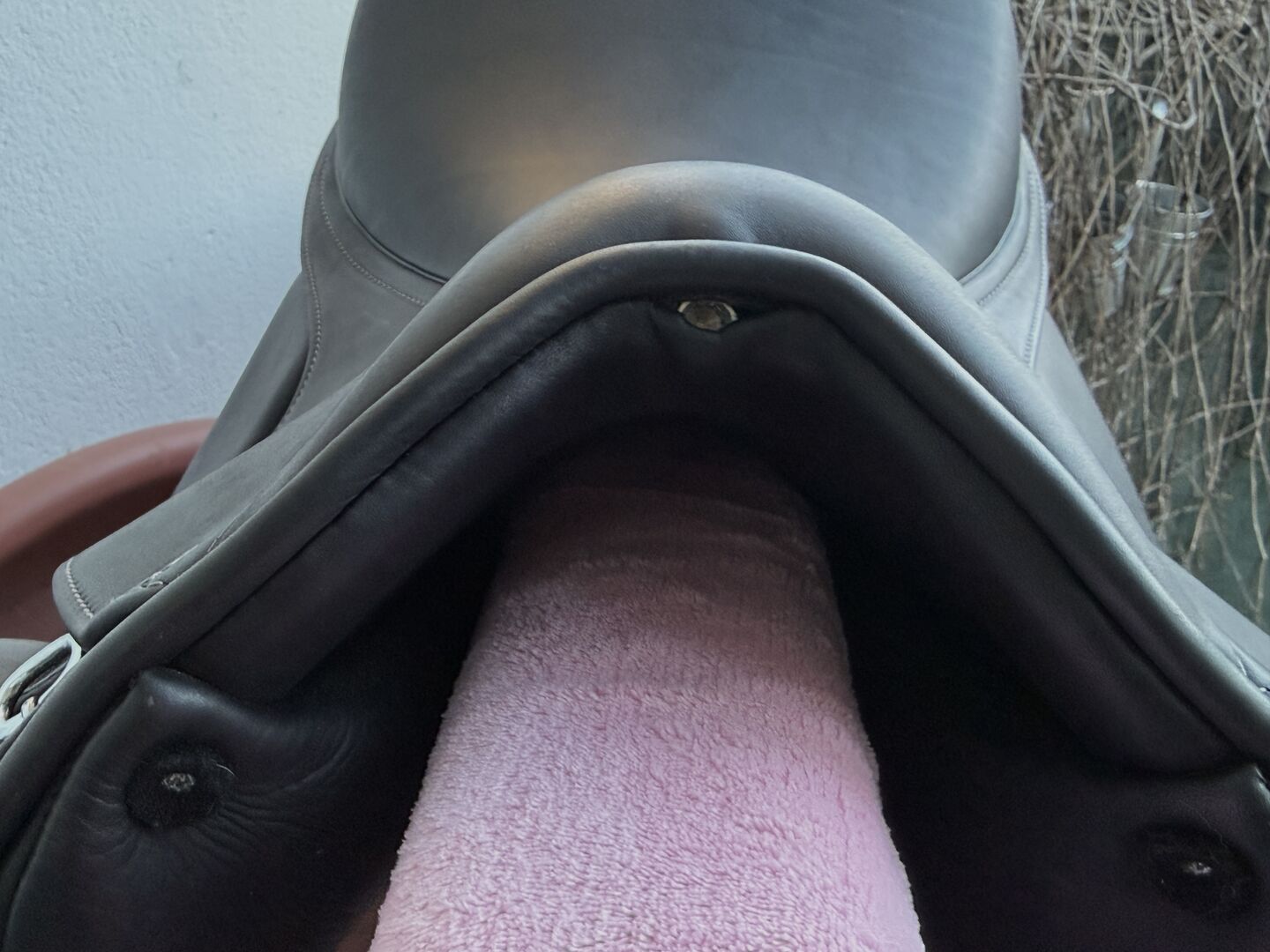 Smal getailleerd, mega comfortabel, doet niet onder voor mijn vorige Hennig dressuurzadel met zachte zit. Erg kort, het werkelijke contactoppervlak en de lengte zijn slechts ca. 42/43 cm. De pads zijn lekker zacht en zeer gelijkmatig, maar ook normaal voor een quasi nieuw zadel dat nog niet is ingezakt. Het Raffaello model heeft opvulbare wollen panelen!