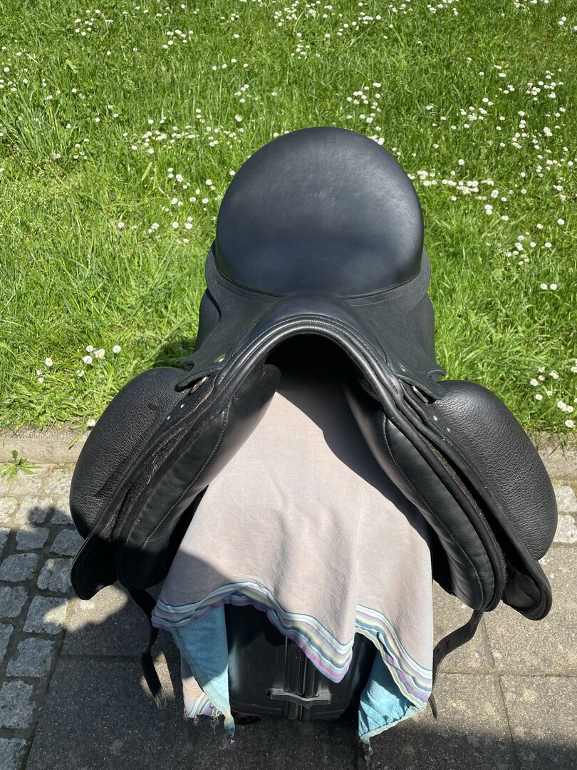 We hebben dit mooie zadel tweedehands gekocht voor ons jonge Spaanse paard met een korte rug. Sinds we vanwege ons academisch werk zijn overgestapt op onderleggers, hebben we het zadel echter nauwelijks gebruikt. Het is dan ook nog in de staat waarin we het van de dealer hebben gekregen.