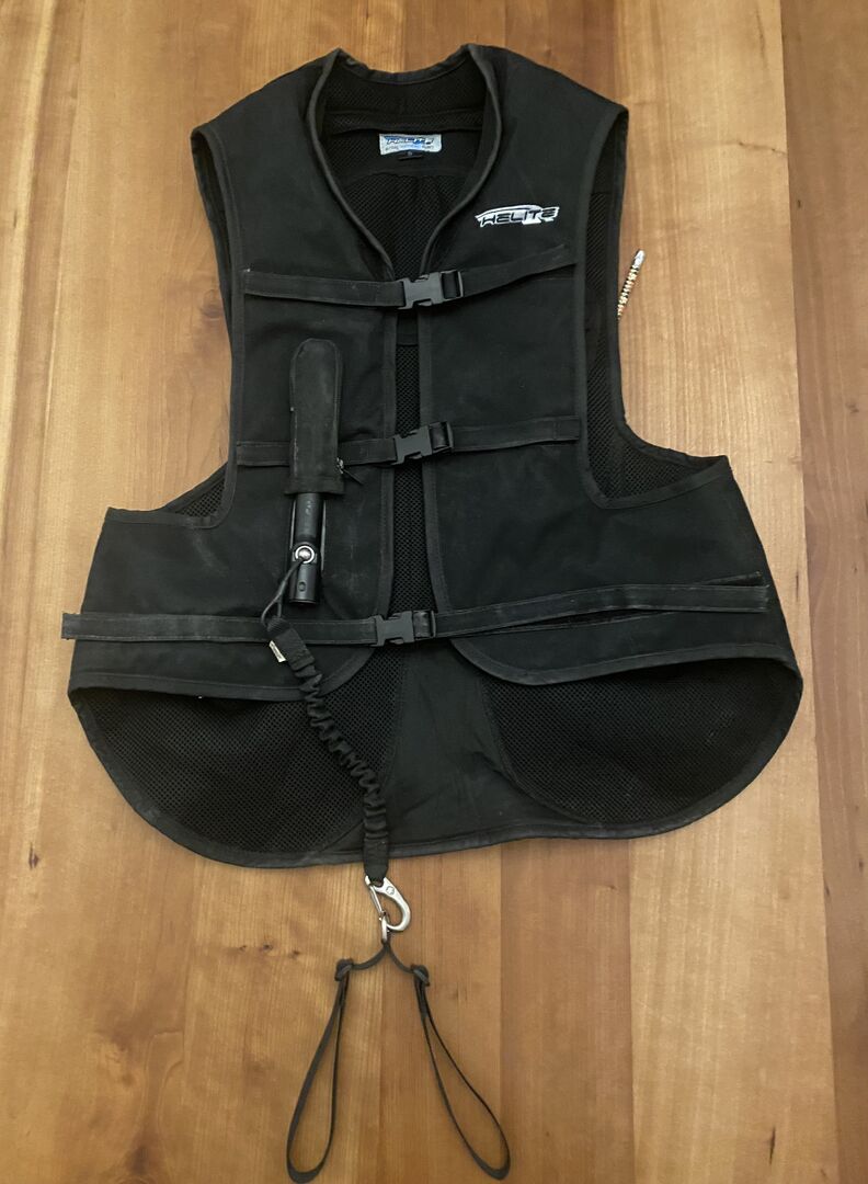 Airbag vest Helite Luchtjack maat S - Helite Airjacket airbag veiligheidsvest - mechanische trekontgrendeling door trekkoord - lichtgewicht, compact, duurzaam - vervangbaar CO2 patroon - tussen 80-100 milliseconden opblaastijd - 3D Airmesh voering - tot 28 liter beschermend volume > in totaal slechts maximaal 15 keer gedragen > Airback is nooit geactiveerd, want nooit gecrasht > gebruiksaanwijzing beschikbaar > cartridge intact > nieuwprijs 499,-- EUR