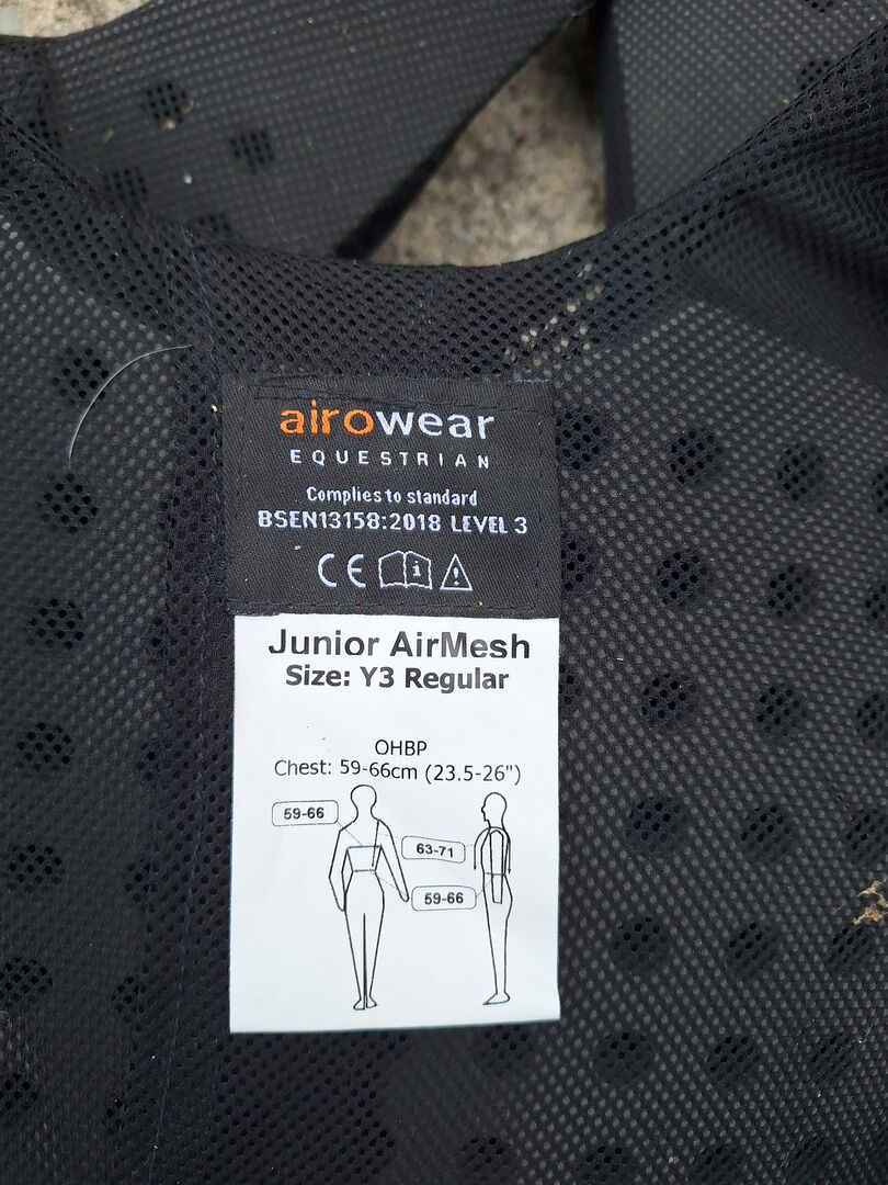 Airowear body protector. Size Junior S3 or 59cm-66cm Chest.