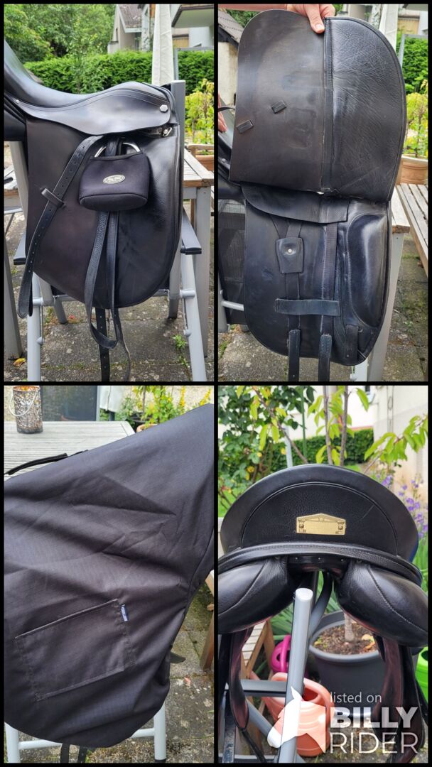 Albion Platina Europa Dressuurzadel 17,5 inch - Gebruikt maar goed onderhouden Albion Platinum Europa dressuurzadel. Goed verzorgd. Met stijgbeugelriemen, stijgbeugels, stijgbeugelbeschermers en zadelflappen. Zie foto's voor afmetingen. Kleur zwart.