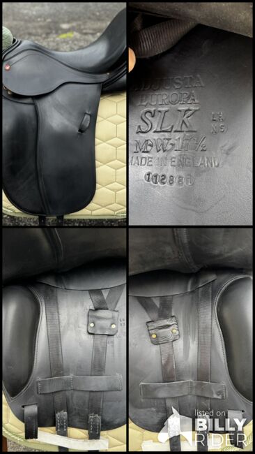 Model: SLK Adjusta Europa Zadel: 17,5 inch Zadelklep: normaal Kamerbreedte: MW - kamer gemiddelde breedte, koud verstelbaar Kussenvulling: wol Kleur: zwart Pasvorm: voor rechte tot licht gebogen paardenruggen met middelhoge schoft, veel schoudervrijheid Staat: in zeer goede staat Leer: slijtvast rundleer Panelen: korte wigpanelen, wigpanelen vooraan Pommel: groot Zit: diep Singel: lange singelstoten Nieuwprijs: 3699€