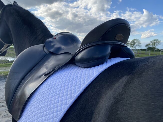 Ik verkoop mijn goed onderhouden Albion SLK Europa dressuurzadel. Het zadel maakt indruk met zijn diepe zit en de uitstekende kwaliteit waar Albion bekend om staat. Het biedt de ruiter optimale ondersteuning zonder beperkend te zijn en geeft het paard veel schoudervrijheid.