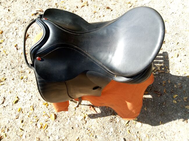 Albion SLK zadel 17,5 inch - Ik verkoop mijn Albion SLK-zadel in 17,5 inch omdat het niet op mijn jonge paard past. Het lag eerder op een grote Duitse rijpony, maar is al een tijdje niet gebruikt. Het zadel vertoont de gebruikelijke gebruikssporen, maar is nog in goede staat.