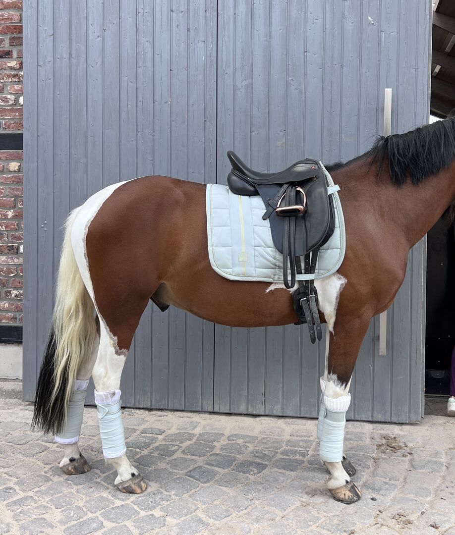 Albion Zadel SLK 16,5" - Ik verkoop mijn Albion SLK dressuurzadel met een 16,5" zitvlak. Het zadeldek is inbegrepen en de stijgbeugels en singel kunnen ook worden aangeschaft. Het is in zeer goede staat en zeer comfortabel.