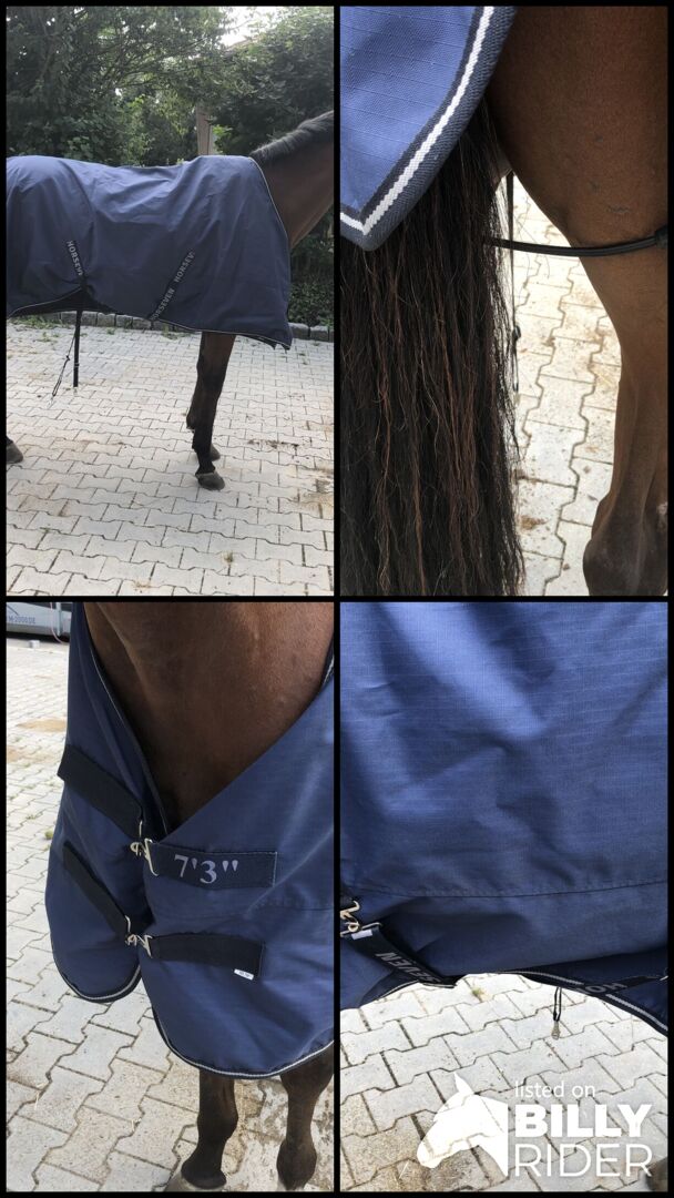 All-weather deken, 50 g. Afmeting 125 cm , Regenbestendig - Lichtgewicht waterdichte deken 50 gram, slijtvast, zacht gevoerde schoft. Kruissingels en beenriemen. Goede pasvorm, een dikke staldeken kan erin. Nieuw. Kan in de wasmachine. Nieuwprijs per deken 137 €. Wegens bedrijfssluiting voor 85 €