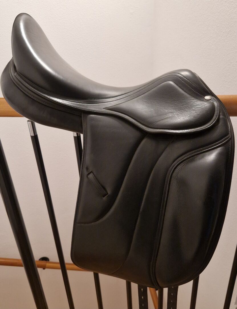 Amerigo Dressuurzadel - Te koop is mijn zeer goed onderhouden Amerigo Vega Pinerolo, zwart, 18", klep L, kamer M, verdubbeld, K4 met kleine klep. Het zadel heeft geen krassen, vlekken of andere beschadigingen (zie foto's).