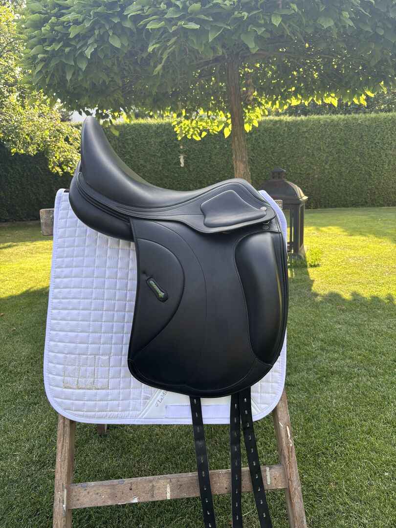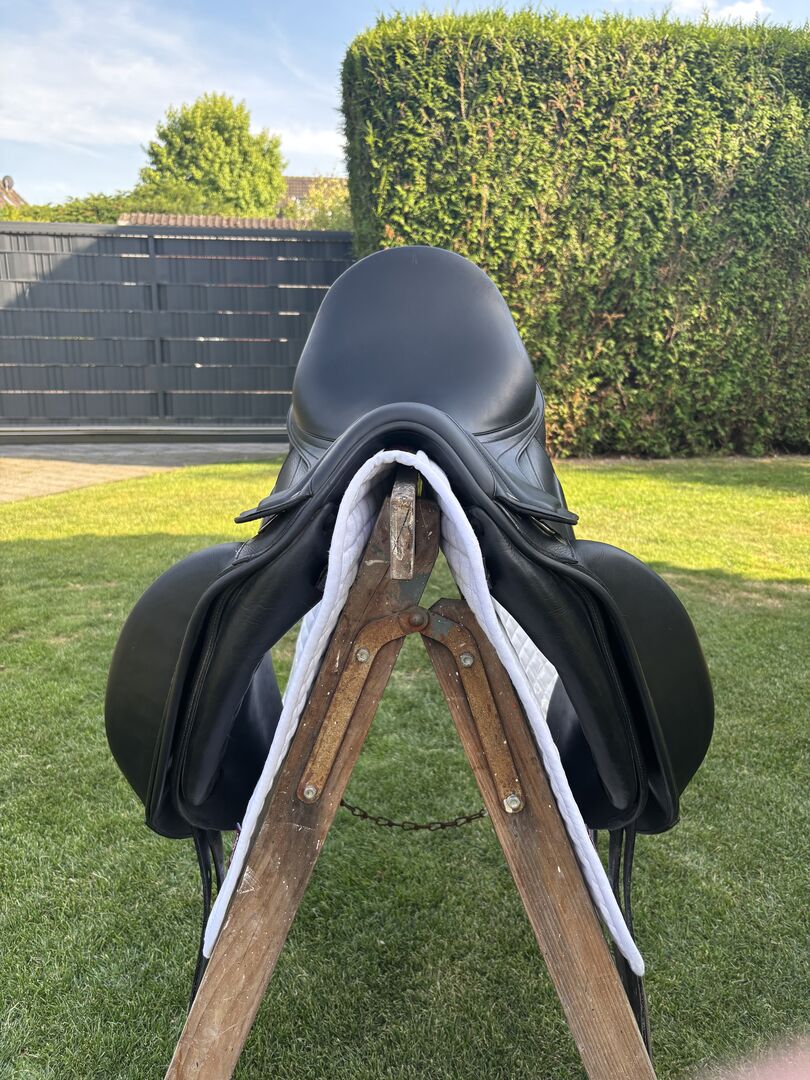 Zitmaat: 17,5 inch - comfortabel voor ruiters met lange benen Kamerbreedte: 27 Staat: zeer goed, regelmatig onderhouden Materiaal: Cervia leer - zeer hoge kwaliteit, duurzaam en voelt prettig aan Nieuwprijs: € 4.300,00