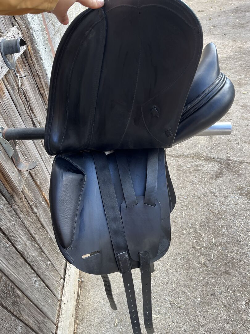 Amerigo dressuurzadel Pinerolo 17,5 - Goed onderhouden, gebruikt dressuurzadel dat ik alleen weggeef omdat het mijn merrie niet meer past. De wol is een jaar geleden volledig vervangen. De drie singelriemen maken individueel singelen naar wens mogelijk. Het zadel is altijd droog opgeslagen en verzorgd.