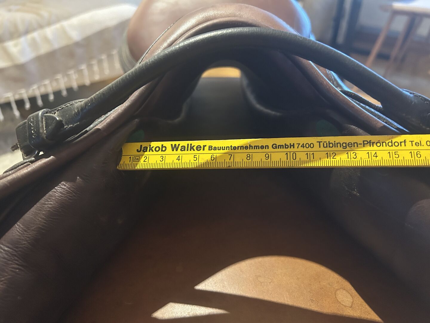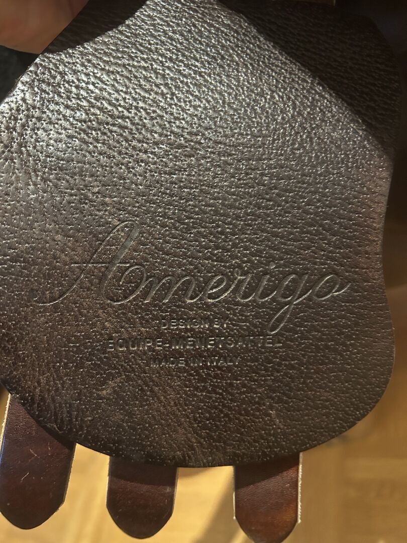 Amerigo springzadel DJ 17,5" donkerbruin - Ik verkoop mijn prachtige donkerbruine Amerigo springzadel. Het zadel is in zeer goede staat, is altijd onderhouden en regelmatig gecontroleerd door de zadelmaker. De kamerbreedte is iets breder, Amerigo geeft dit aan als +2.5. Het was gemonteerd op een 1,75 groot, medium sterk warmbloed.