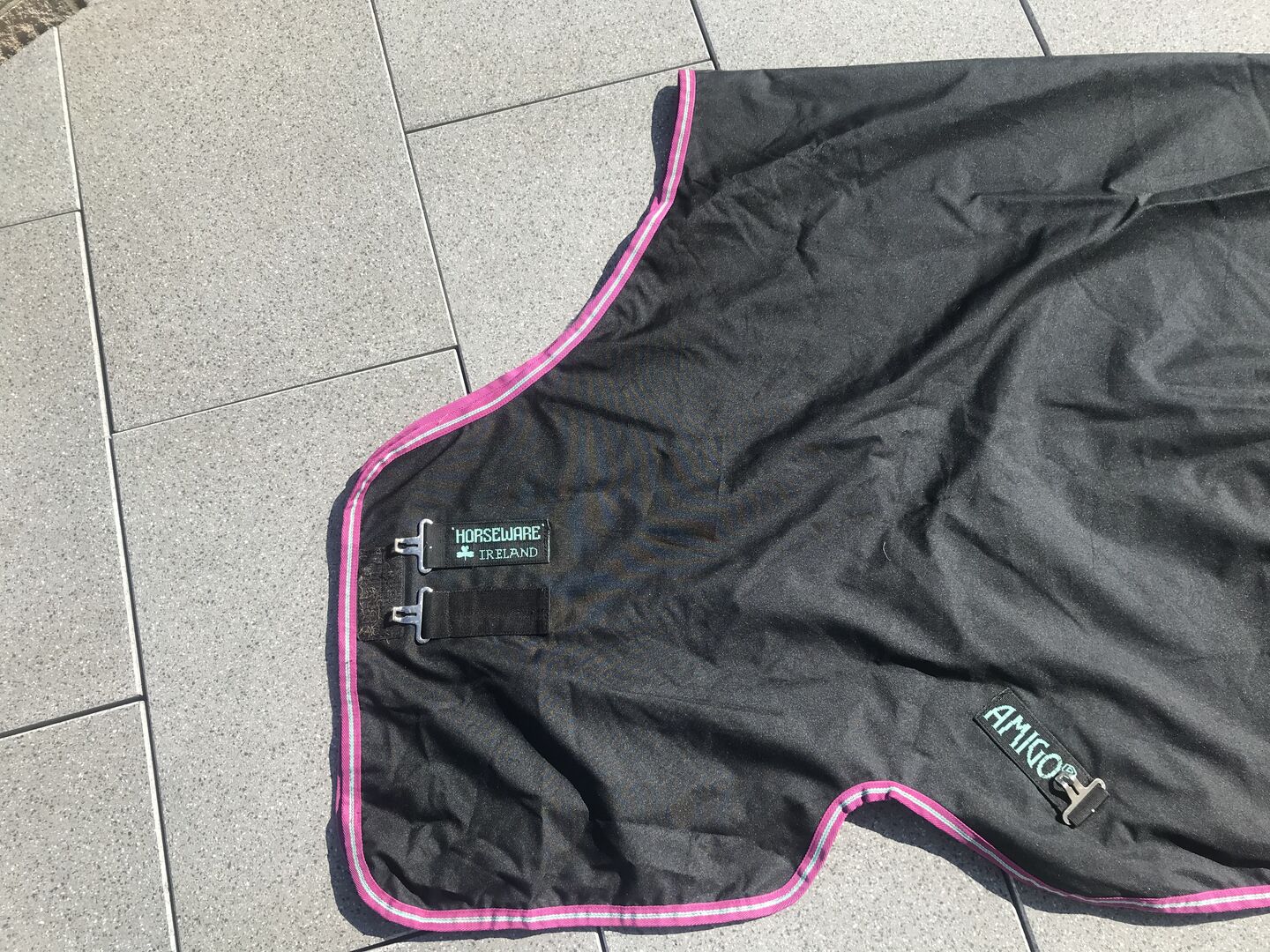 Is één seizoen gebruikt (niet vaak). Ondanks het wassen blijven er natuurlijk wel paardenharen liggen.