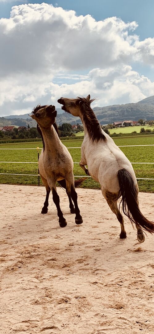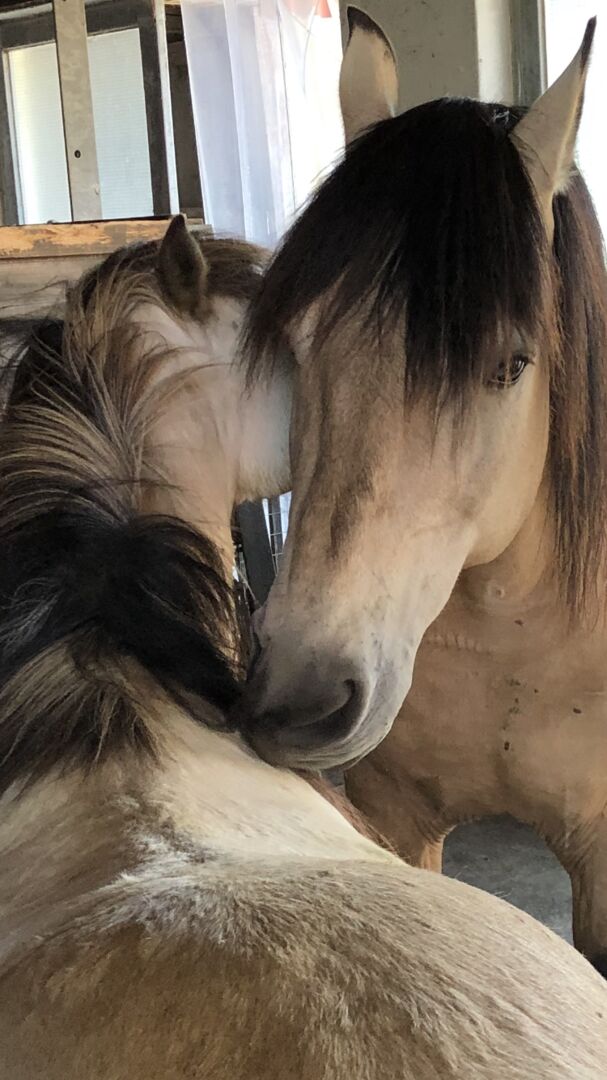 Beide LBE paarden in open stallen Stalling alleen mogelijk met een zeer, zeer grote paddock.